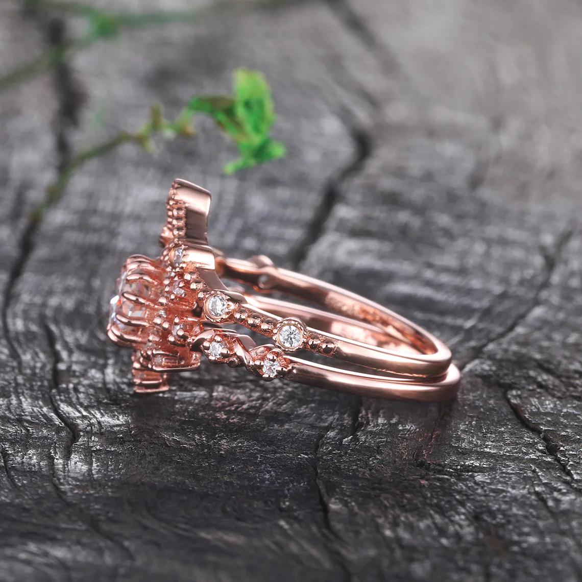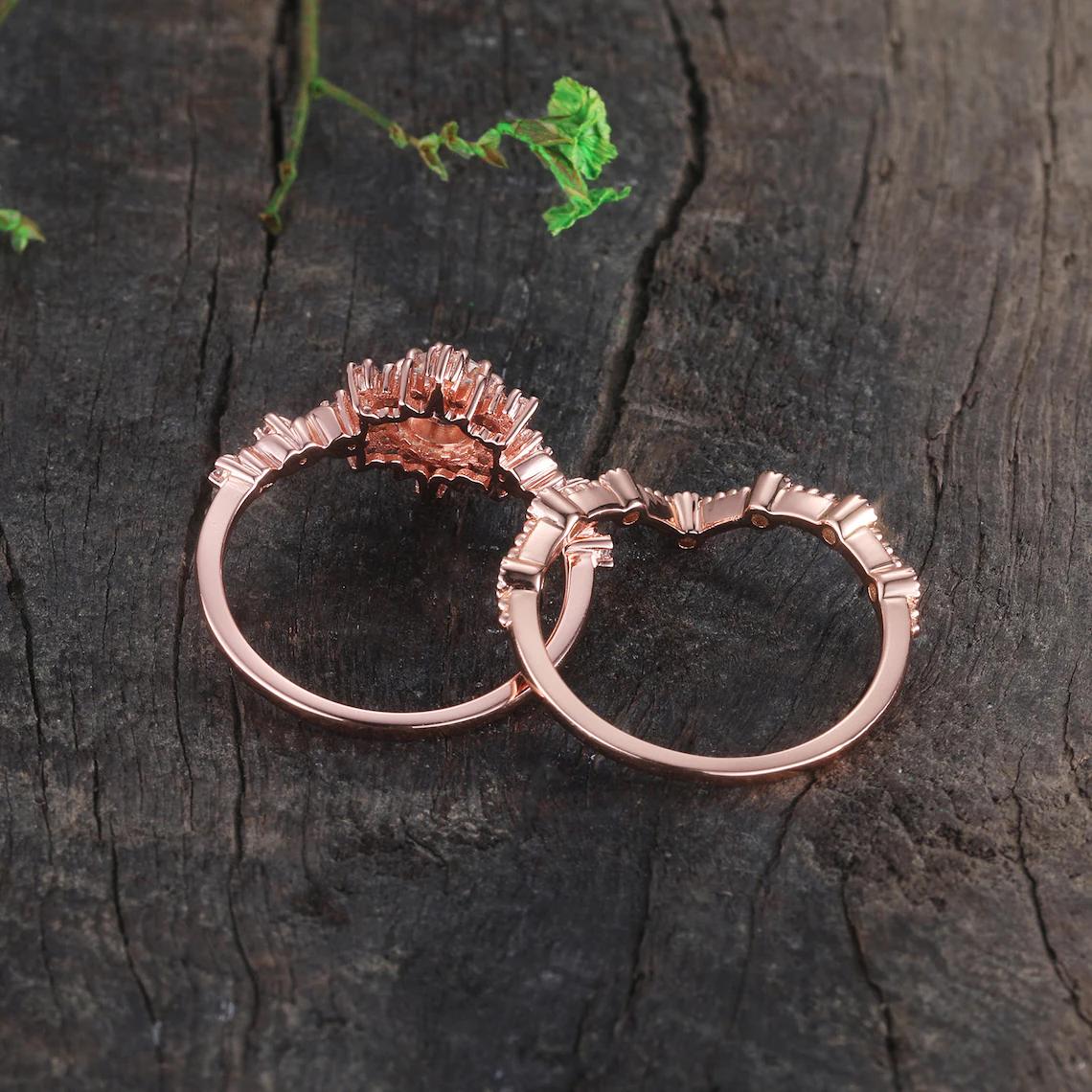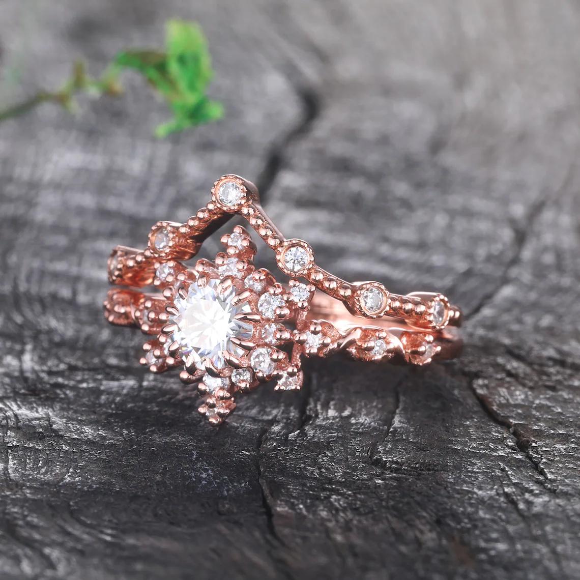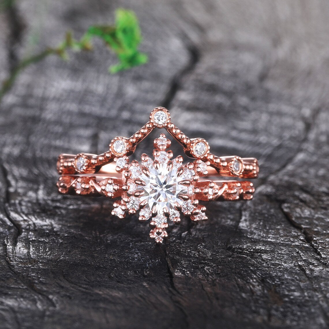 Antique Moissanite Engagement Ring Set, Curved Art Deco Wedding Ring, Round Cut Moissanite Engagement Ring, Promise Ring, Anniversary Ring