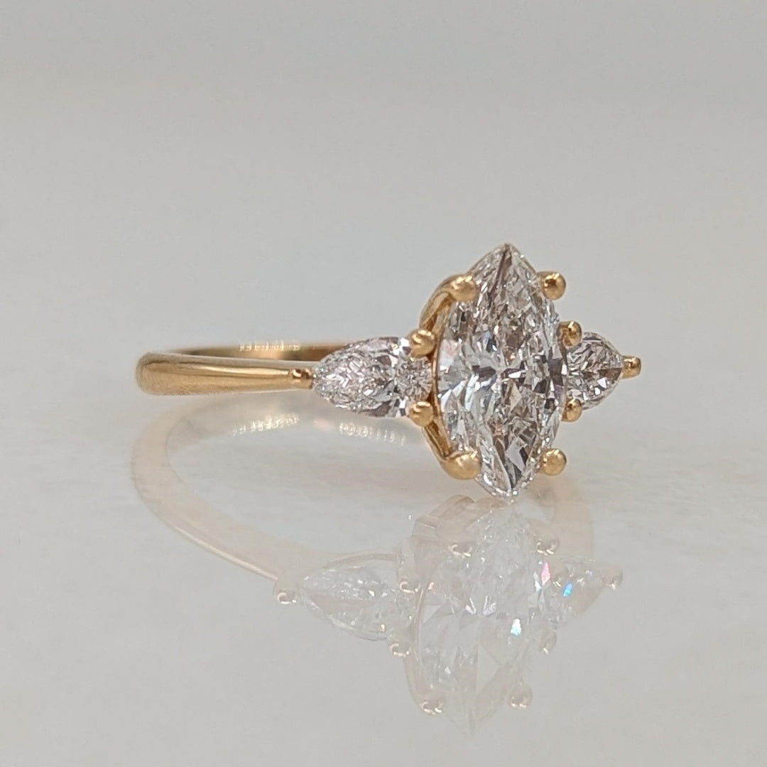 18k Gold Lab Grown Diamond CVD 1.5CT Marquise-Cut With Two Pear Stones Engagement Ring